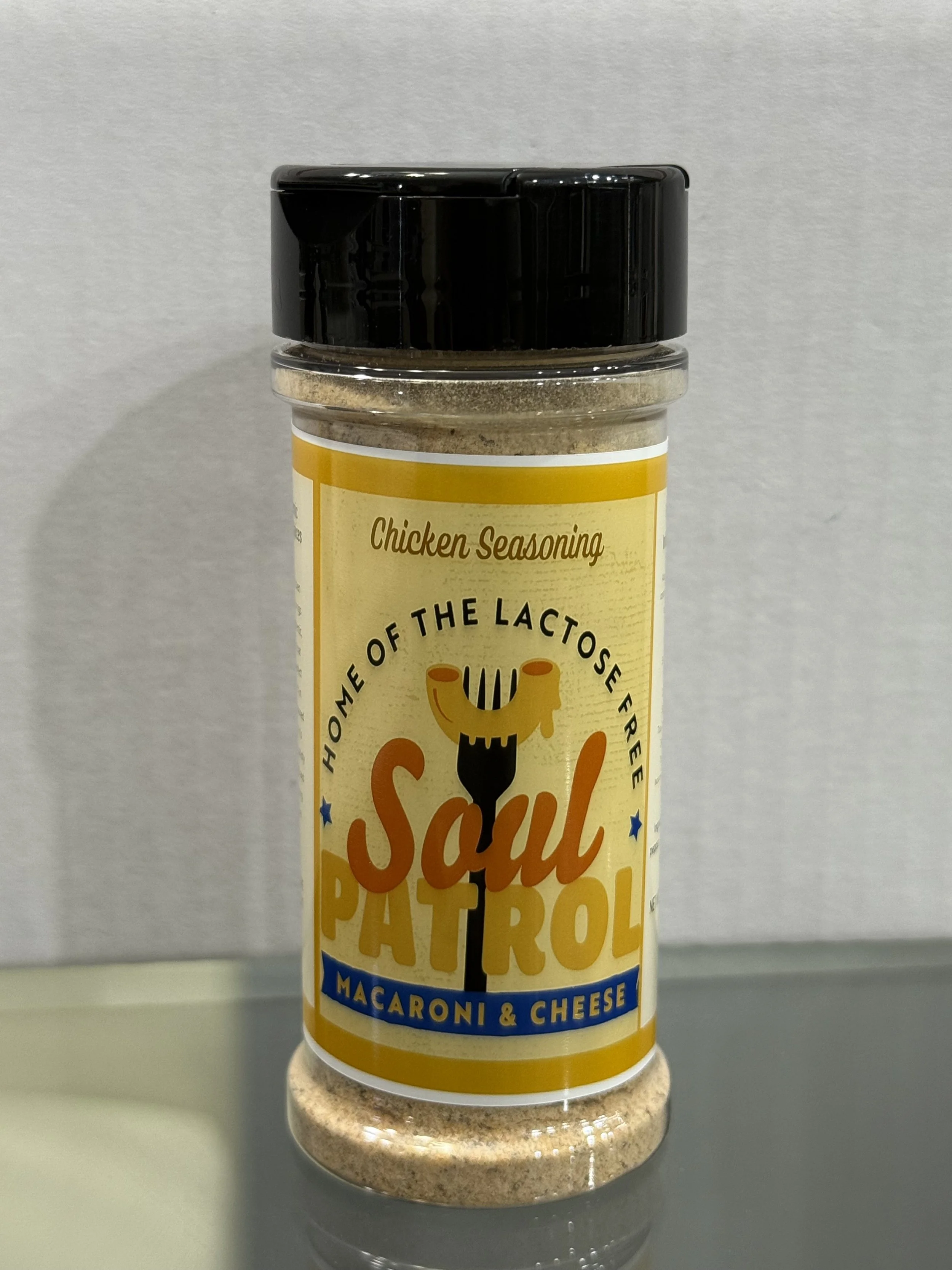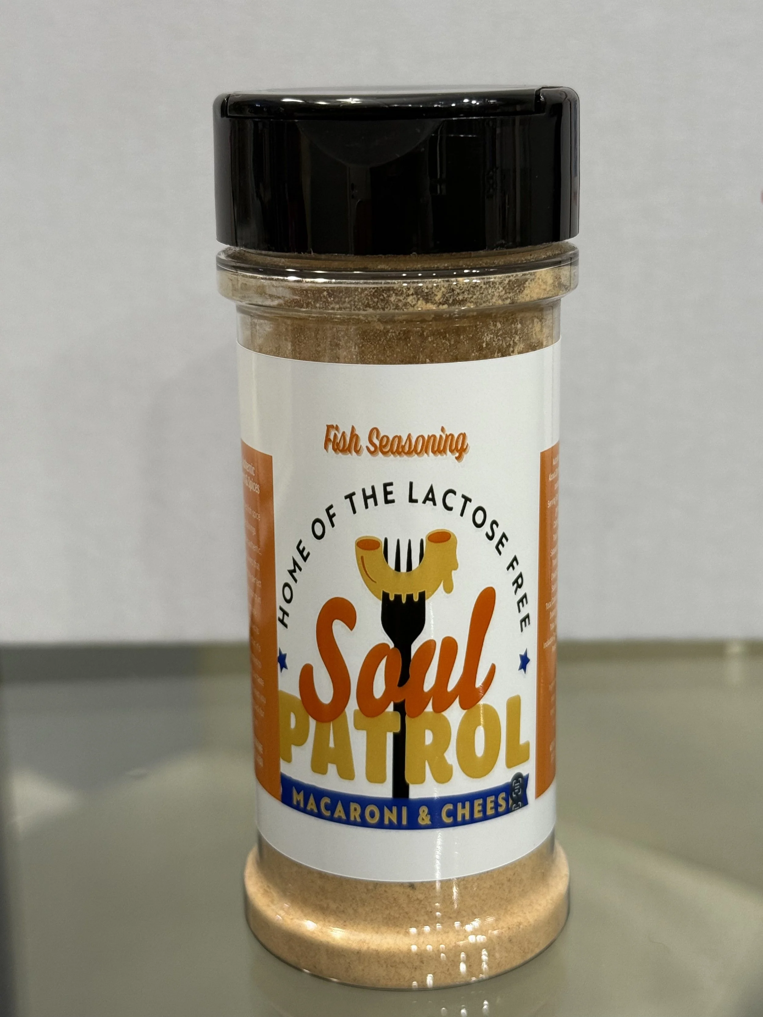 Place Order FROZEN LACTOSE FREE MACARONI AND CHEESE, 32 OZ. $24.99 Add To Cart Added! Soul Patrol Chicken Seasoning, 5.5 OZ. $5.99 Add To Cart Added! Soul Patrol Fish Seasoning, 5.5 OZ. $5.99 Add To Cart Added! Have Questions?EMAIL: SOULPATROLRESTAURANT@GMAIL.COMTEXT/CALL: 865-985-3011